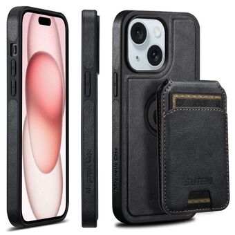 Θήκη τηλεφώνου για iPhone 15 Suteni M2 Oil Wax MagSafe Οριζόντια Θήκη Κάρτας (Μαύρο) (Suteni)