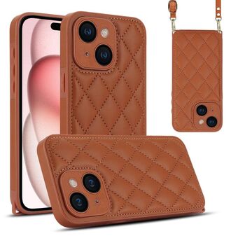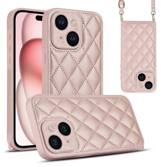 Θήκη τηλεφώνου με ρόμβους υφής για iPhone 15 με διπλό κορδόνι (Πράσινο)