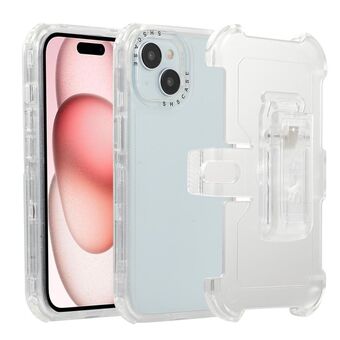 Θήκη τηλεφώνου για iPhone 15 από ματ πολυανθρακικό + TPU με κλιπ στην πλάτη (Λευκό)