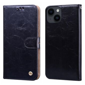 Oil Wax υφή Shockproof Flip δέρμα τηλέφωνο υπόθεση για το iPhone 15 (μαύρο)