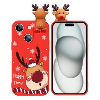 Θήκη τηλεφώνου από μαλακό TPU για iPhone 15 με έγχρωμο σχέδιο ελαφιού (Χιονάνθρωπος και Ελάφι)