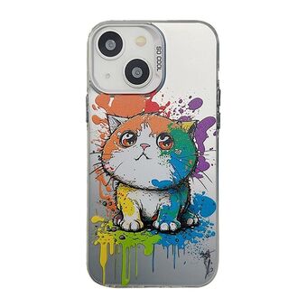For iPhone 15 Cute Animal Pattern Series PC + TPU Phone Case(Looking Up Fat Cat)
