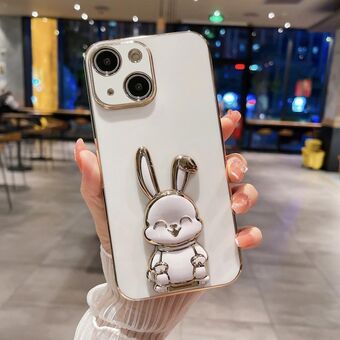 For iPhone 15 Plating Rabbit Holder Phone Case(White)
