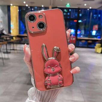 For iPhone 15 Plating Rabbit Holder Phone Case(Pink)