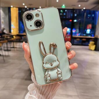 For iPhone 15 Plating Rabbit Holder Phone Case(Green)