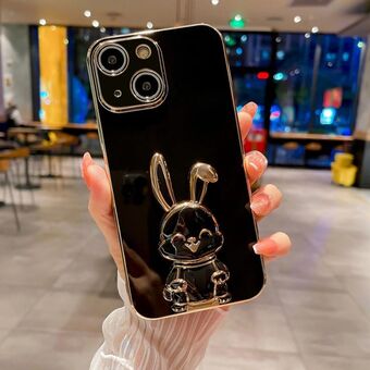For iPhone 15 Plating Rabbit Holder Phone Case(Black)