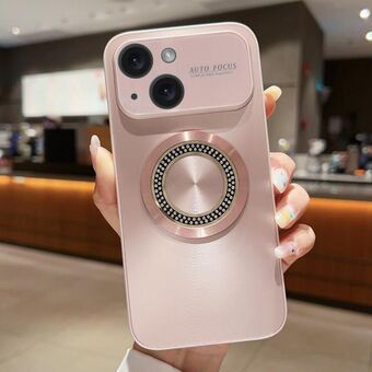 For iPhone 15 Large Window Diamond Magnifier Magnetic Phone Case(Pink)