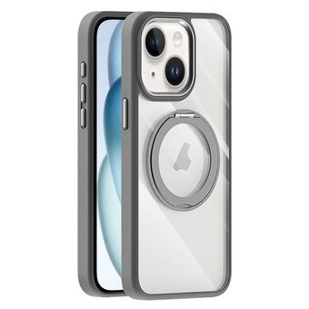 For iPhone 15 Transparent MagSafe Magnetic Holder Phone Case(Light Grey)