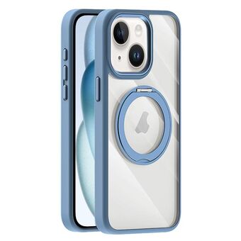 For iPhone 15 Transparent MagSafe Magnetic Holder Phone Case(Light Blue)