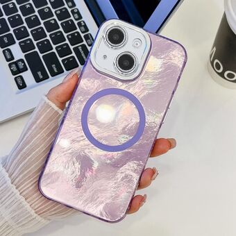 Θήκη τηλεφώνου TPU με επιμετάλλωση, υφή και MagSafe για iPhone 15 με προστατευτική μεμβράνη φακού με γκλίτερ (Μωβ Φτερά)