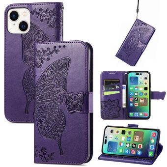 Θήκη τηλεφώνου από δέρμα με ανάγλυφο σχέδιο πεταλούδας και λουλουδιών για iPhone 15 (Μαύρο)