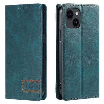 Θήκη τηλεφώνου από δέρμα με μαγνητική υφή retro και προστασία RFID για iPhone 15 TTUDRCH (Πράσινο)