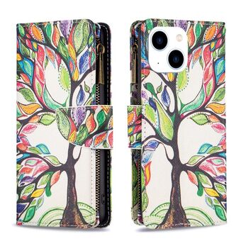 Θήκη δερμάτινη για iPhone 15 με σχέδιο ζωγραφικής και φερμουάρ (Δέντρο)
