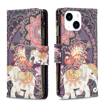 Θήκη δερμάτινη για iPhone 15 με σχέδιο ζωγραφικής και φερμουάρ (Λουλούδι Ελέφαντας)