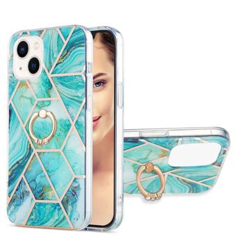 Θήκη για iPhone 15 με ηλεκτρολυτική επιμετάλλωση, συνδυασμό μοτίβου μαρμάρου IMD, αντικραδασμική από TPU με δακτύλιο στήριξης (Ροζ Λευκό)
