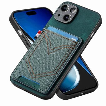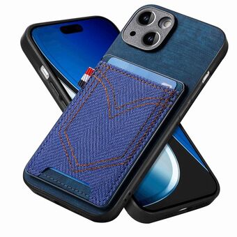 Θήκη τηλεφώνου από δέρμα με υφή τζιν για iPhone 15 με θήκη για κάρτες (Μαύρο)