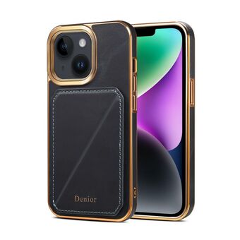 Θήκη τηλεφώνου για iPhone 15 Denior, από δέρμα με κερί λαδιού και ηλεκτρολυτική επίστρωση, με θήκη για κάρτες (Μαύρο) (Denior)