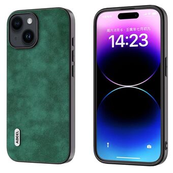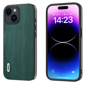 Θήκη τηλεφώνου ABEEL για iPhone 15 με υφή ξύλου από PU (Πράσινο)