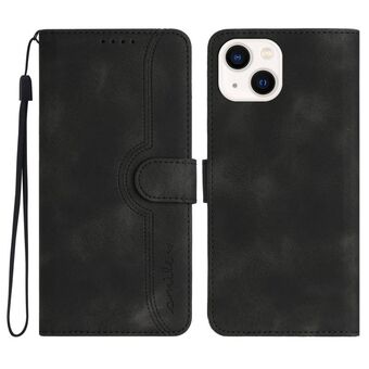 Θήκη τηλεφώνου από δέρμα με υφή καρδιάς για iPhone 15 (Μαύρο)