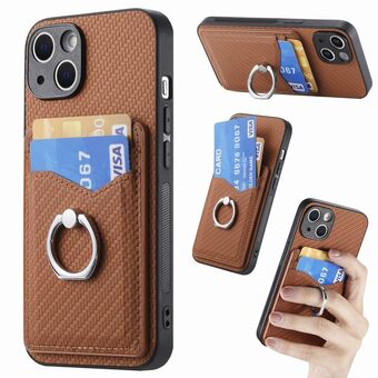 Θήκη τηλεφώνου για iPhone 15 από ανθρακονήματα με κάρτες και δακτύλιο στήριξης (Μαύρο)