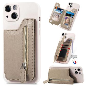 Θήκη για iPhone 15, Δερμάτινο Ρετρό Πορτοφόλι με Φερμουάρ, για την Πλάτη του Τηλεφώνου (Μαύρο)