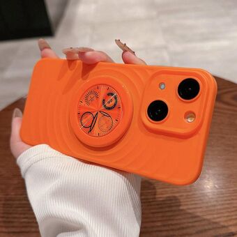 Θήκη για iPhone 15 με υφή κυμάτων, αντικραδασμική από πολυανθρακικό με βάση στήριξης (Πορτοκαλί)