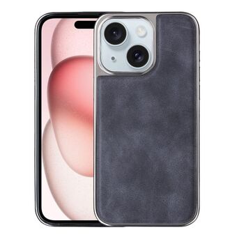 Θήκη τηλεφώνου για iPhone 15 από πολυανθρακικό υλικό με υφή Napa και δέρμα (Γκρι)