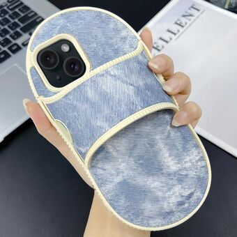 Θήκη τηλεφώνου TPU για iPhone 15 με δημιουργικό σχέδιο παντοφλών από τζιν (Μπλε)