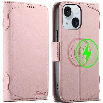 Θήκη τηλεφώνου από δέρμα με αναδιπλούμενο καπάκι, με ρετρό ματ φινίρισμα και προστασία RFID για iPhone 15 (Καφέ) (ESEBLE)