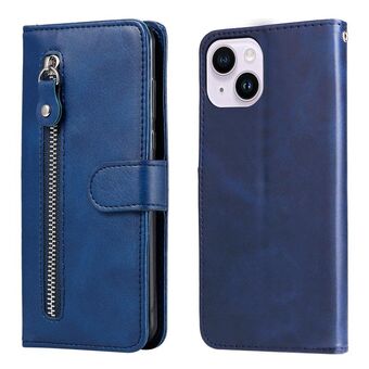 For iPhone 15 Fashion Calf Texture Zipper Leather Phone Case(Blue)