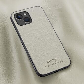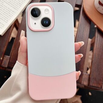 Θήκη κινητού τηλεφώνου 2 σε 1 για iPhone 15, Υβριδική από PC και TPU με αίσθηση δέρματος, Αντίθεση χρωμάτων (Ασημί + Καφέ)