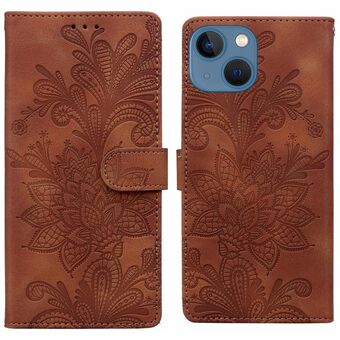 Θήκη τηλεφώνου για iPhone 15 με δαντέλα, λουλουδάτο ανάγλυφο, μαγνητικό κούμπωμα και λουρί καρπού (Πράσινο)