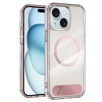 Θήκη τηλεφώνου για iPhone 15, Διάφανη Υβριδική PC TPU με MagSafe και Στήριξη (Ροζ)