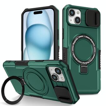 Θήκη τηλεφώνου για iPhone 15 με συρόμενο προστατευτικό κάμερας, MagSafe και υβριδικό υλικό TPU/PC (Σκούρο Πράσινο)