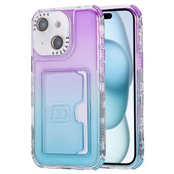 For iPhone 15 Gradient Color TPU + PC Card Slot Full Coverage Phone Case(Purple Sky Blue)