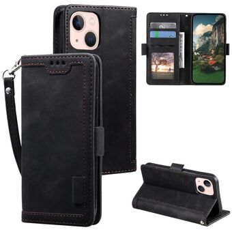 For iPhone 15 Retro Splicing Horizontal Flip Leather Phone Case(Black)