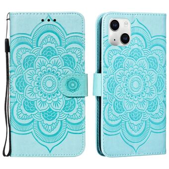 For iPhone 15 Mandala Embossing Pattern Horizontal Flip Leather Phone Case(Green)
