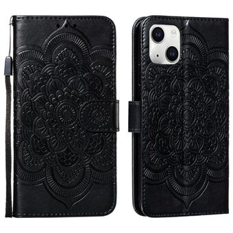 For iPhone 15 Mandala Embossing Pattern Horizontal Flip Leather Phone Case(Black)