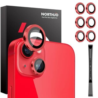 For iPhone 15 / 15 Plus / 14 / 14 Plus NORTHJO 3 Set 6pcs Camera Lens Protector Cover Metal Ring Film(Red) (NORTHJO)