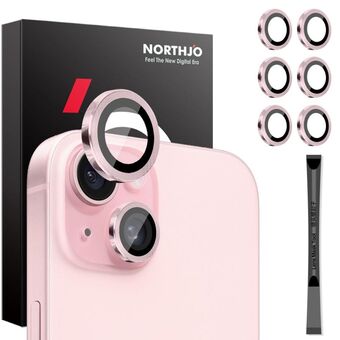 For iPhone 15 / 15 Plus / 14 / 14 Plus NORTHJO 3 Set 6pcs Camera Lens Protector Cover Metal Ring Film(Pink) (NORTHJO)