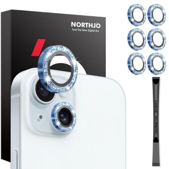 For iPhone 15 / 15 Plus / 14 / 14 Plus NORTHJO 3 Set 6pcs Camera Lens Protector Glitter Metal Ring Film(Blue) (NORTHJO)