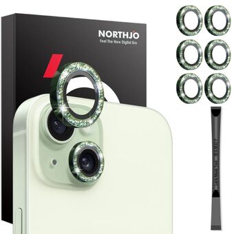 For iPhone 15 / 15 Plus / 14 / 14 Plus NORTHJO 3 Set 6pcs Camera Lens Protector Glitter Metal Ring Film(Green) (NORTHJO)