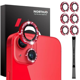 For iPhone 15 / 15 Plus / 14 / 14 Plus NORTHJO 3 Set 6pcs Camera Lens Protector Glitter Metal Ring Film(Red) (NORTHJO)