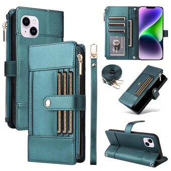 For iPhone 15 Plus Crossbody Strap RFID Blocking Zipper Wallet Leather Phone Case(Green)