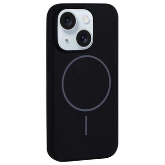 For iPhone 15 Plus Large Hole Camera MagSafe Liquid Silicone Full Coverage Phone Case(Carbon Gray Black)