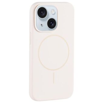 For iPhone 15 Plus Large Hole Camera MagSafe Liquid Silicone Full Coverage Phone Case(Antique White)