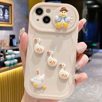 For iPhone 15 Plus Creative 3D Duck Design Sliding Window Full Coverage Phone Case(Beige)