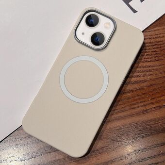 For iPhone 15 Plus Leather Texture Design MagSafe Full Coverage Phone Case(White)