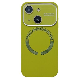 For iPhone 15 Plus Large Window Acrylic Glass Lens MagSafe Silicone Phone Case(Willow Green)