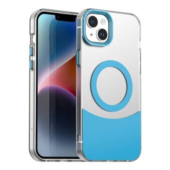 For iPhone 15 Plus Color Blocking Series MagSafe Magnetic PC Hybrid TPU Phone Case(Blue)